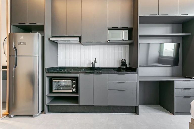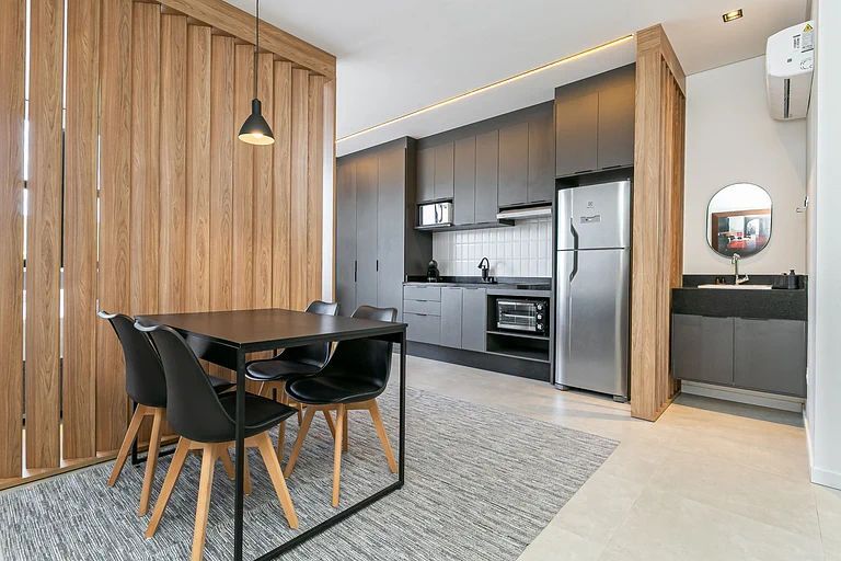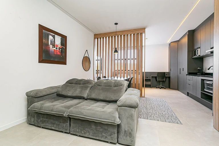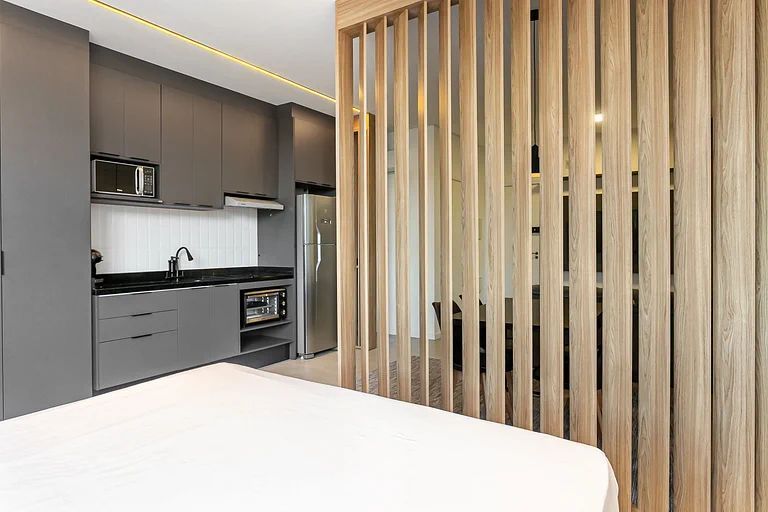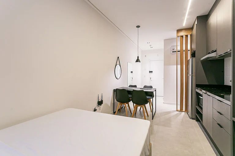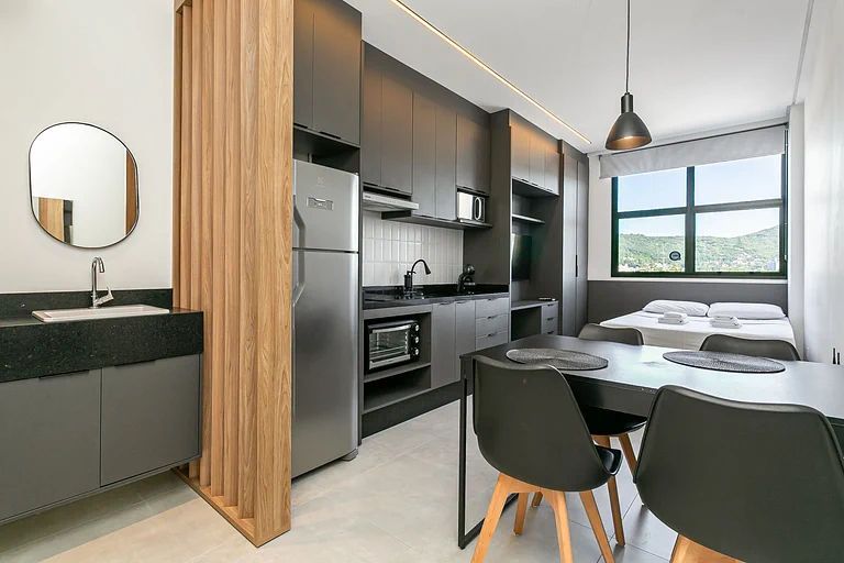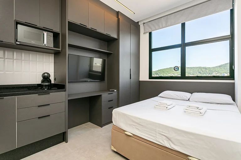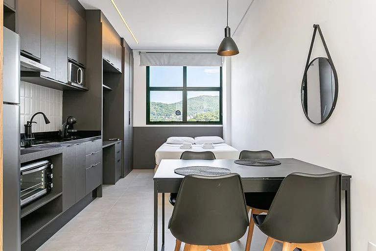 Nossos estúdios que contém 26 a 35m² são a escolha perfeita para quem busca um estilo de vida urbano com todas as facilidades ao seu redor. Completamente mobiliados, cada estúdio é decorado e equipado para atender todas as suas necessidades, oferecendo móveis funcionais e eletrodomésticos para você se sentir em casa desde o primeiro momento. Além de estar localizado em um complexo gastronômico e empresarial, com diversas opções de restaurantes e salas para locação, ainda conta com serviço de limpeza semanal e lavanderia compartilhada, é a junção perfeita da praticidade e conforto.